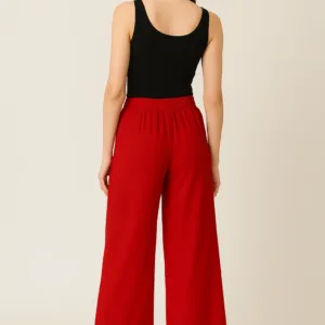 π The high-rise waistband flatters your figure and provides a secure yet comfortable fit, while subtle pleat detailing at the front adds an extra touch of refinement. Its versatile Red shade makes it a must-have wardrobe essentialβyou can style it with formal shirts for office wear, chic blouses for outings, or casual tops for a relaxed day look. Whether itβs work meetings, casual brunches, or evening get-togethers, this palazzo adapts effortlessly to every occasion.